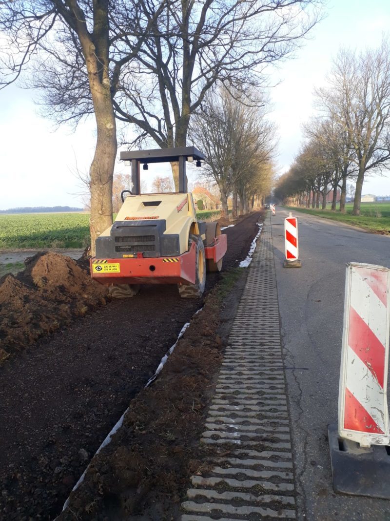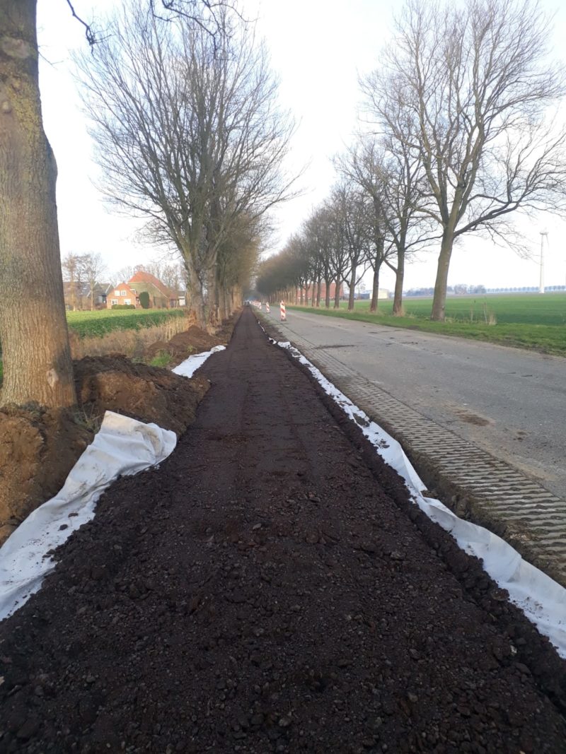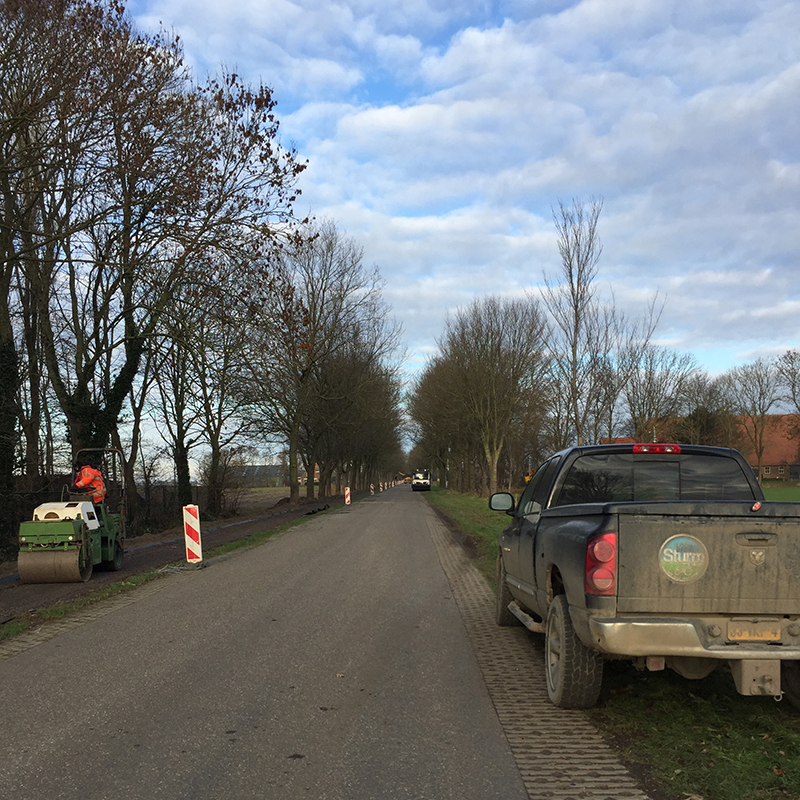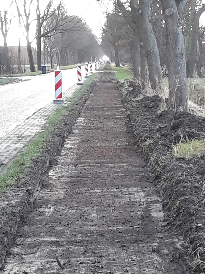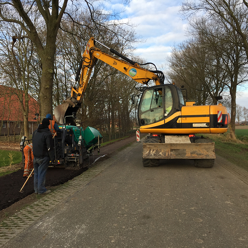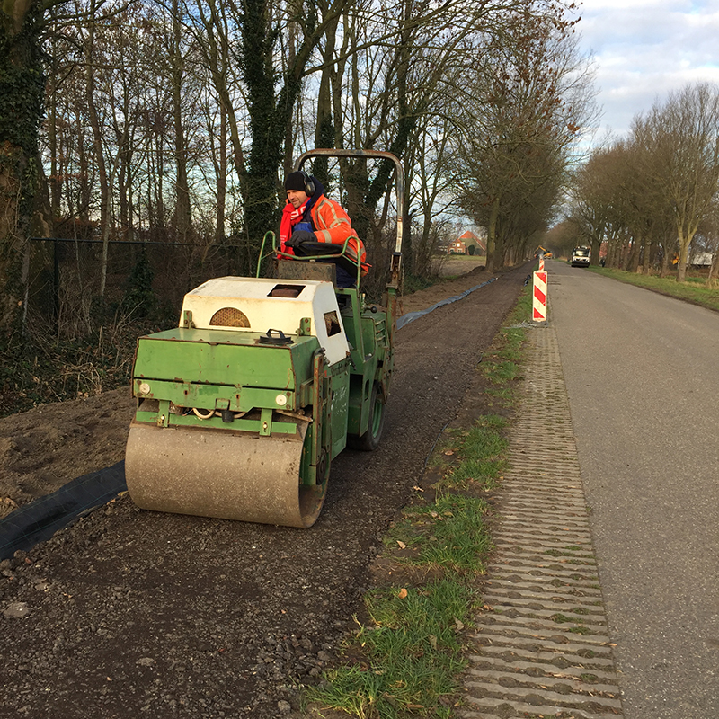 Onder deskundige leiding van Loonbedrijf Sturm-Jacobs hebben de mannen van de loonbedrijven Sturm-Jacobs, Van der Meer en Hopmans en de Van Gelder Groep vele uren in de kou gestaan. Eerst met drie kranen het pad afgraven. Dan doek en met twee lagen gemalen asfalt afdekken en de lagen gemalen asfalt walsen. Als het weer het toelaat worden het pad nog afgedekt met een toplaag fijn asfalt. Door de stevige wind viel het niet mee om het doek uit te rollen, gelukkig kwam er hulp van bewoners en vrijwilligers.